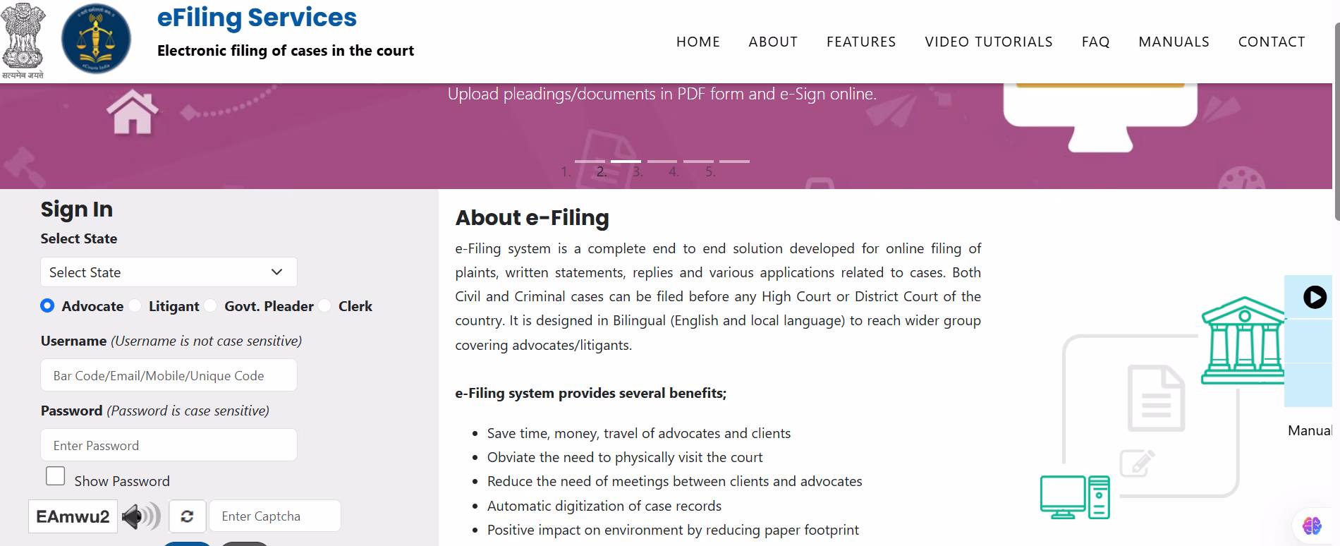 In daily court practice, e-filing is mostly used by advocates. Almost every regular practitioner has an account on the portal. Party-in-person cases are also allowed, but in reality most filings are done through lawyers.